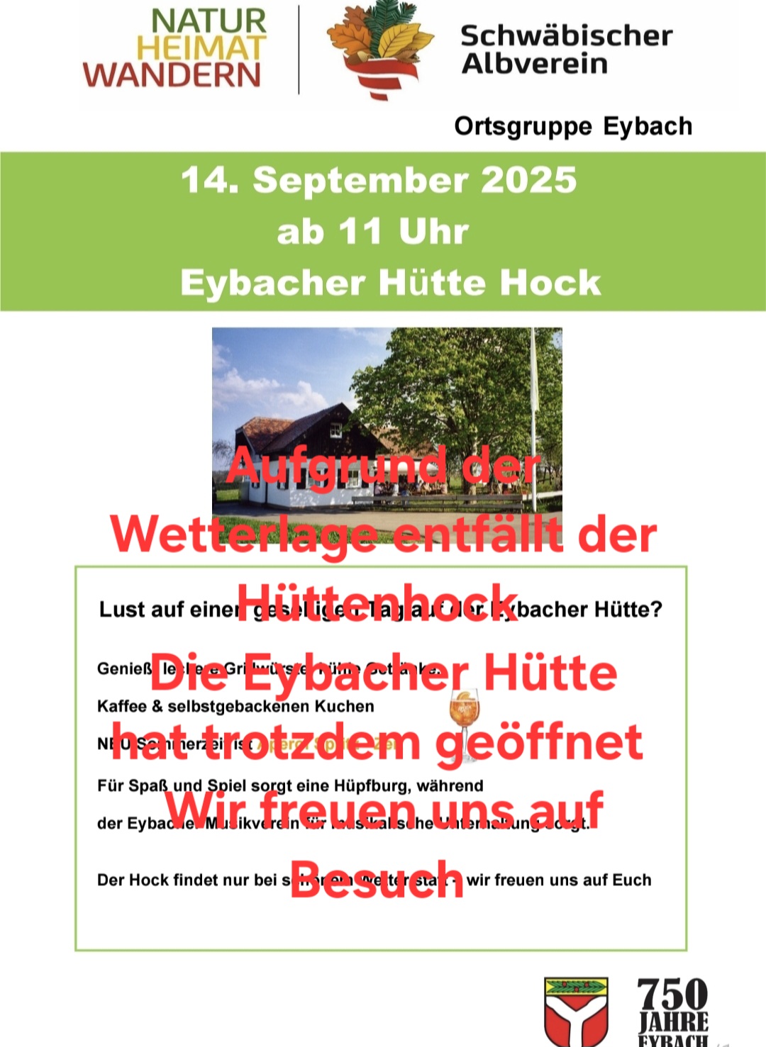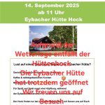 Aufgrund der unbeständigen Wetterlage wird unser Hüttenhock am 14.9 abgesagt